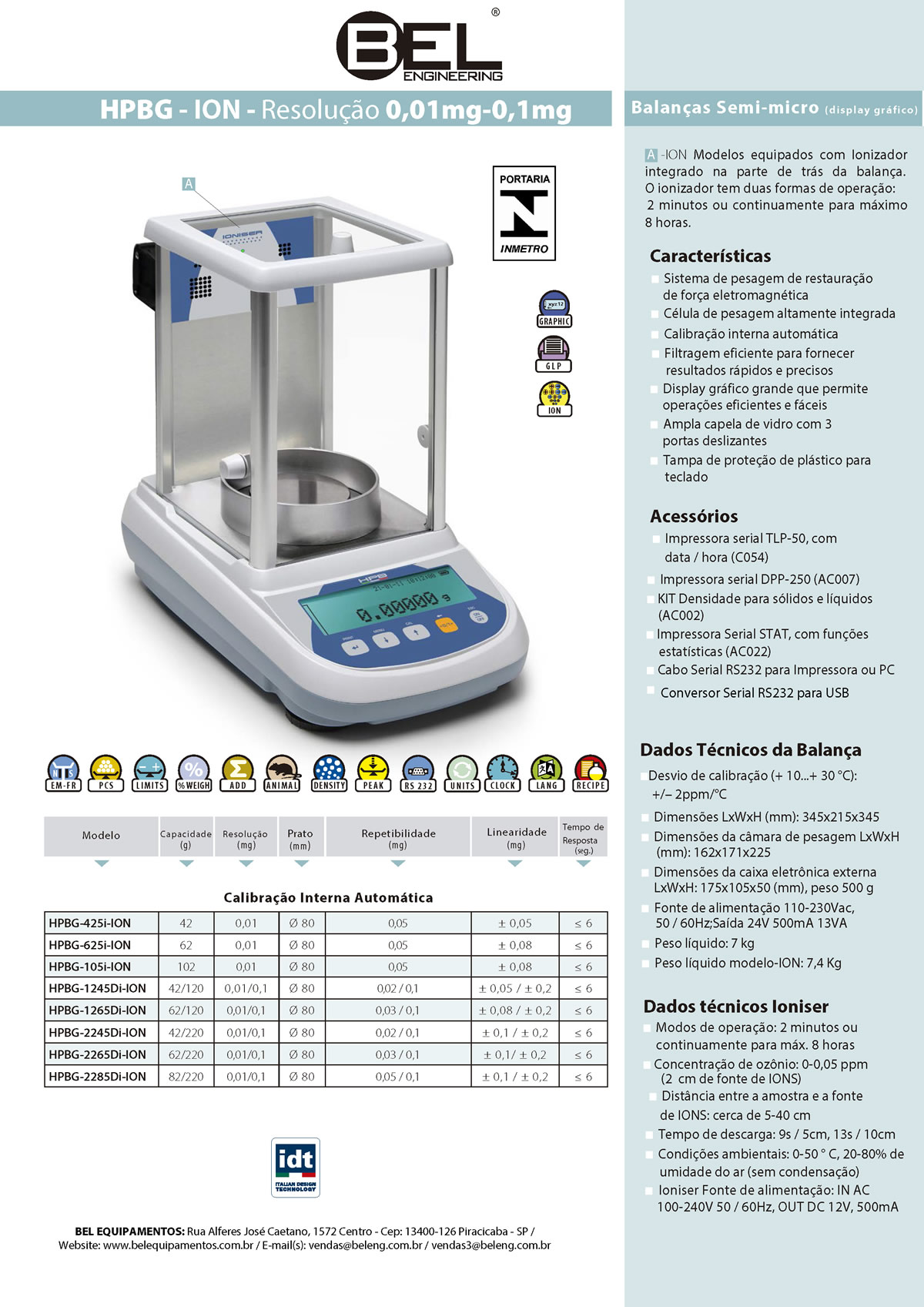 Novas Balanças Semi-micro Modelos HPBG e HPBG-ION